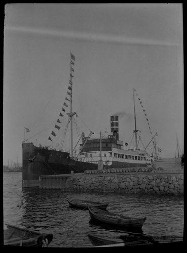 Þetta er Lyra, skip Bergenska gufuskipafélagsins sem var í ferðum milli Björgvinjar, Færeyja og Íslands frá 1925-39. Það var einnig í siglingum milli Íslands og Bretlands á stríðsárunum.