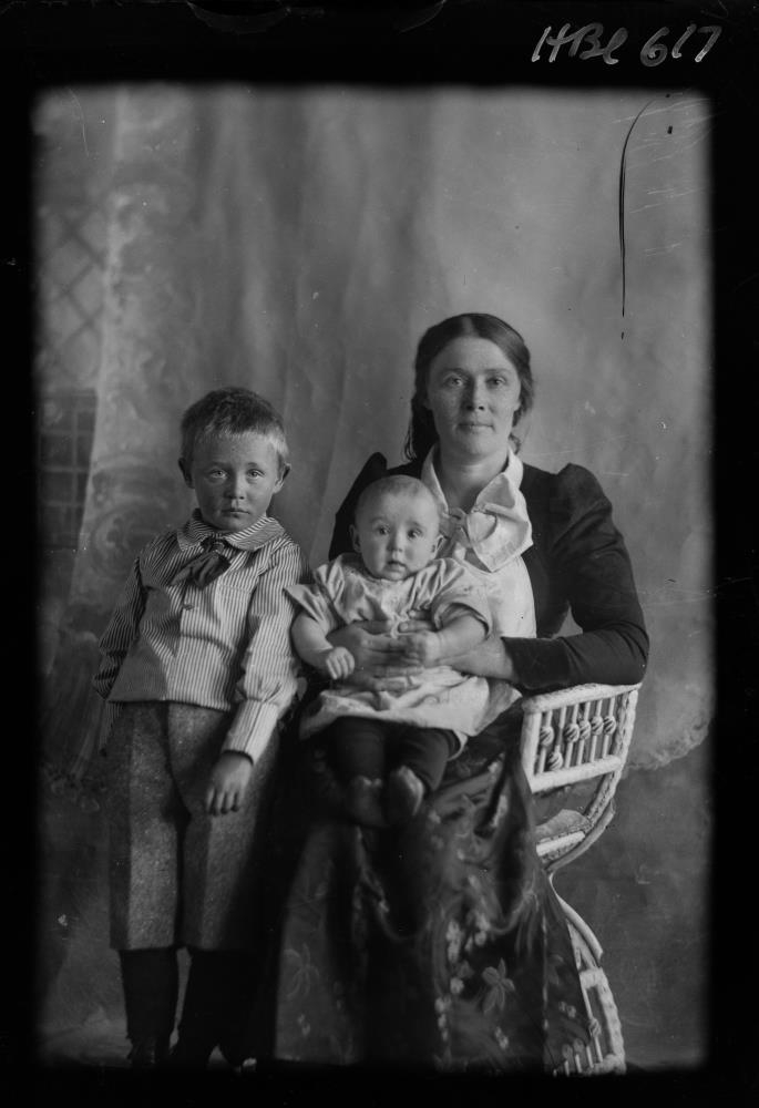 Ingibjörg Jónsdóttir Garði, Stokkseyri með syni sína Guðmund og Þórð Böðvarssyni.