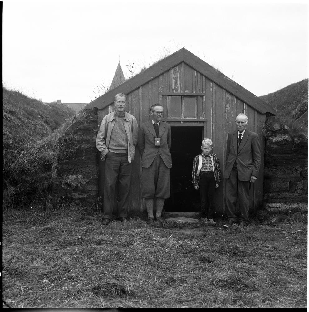 „Myndin er tekin 7. júlí 1958. Lengst til vinstri er Mark Watson, hægra megin við hann er vinur hans sem var á ferð með honum, litli drengurinn er Þórarinn Eldjárn og lengst til hægri er síðan Hjörtur Kr. Benediktsson á Marbæli. Þessar upplýsingar koma frá Sigurði Árnasyni, frænda Hjartar sem man vel eftir honum og Þórarni Eldjárn sem er á myndinni og man vel eftir henni.