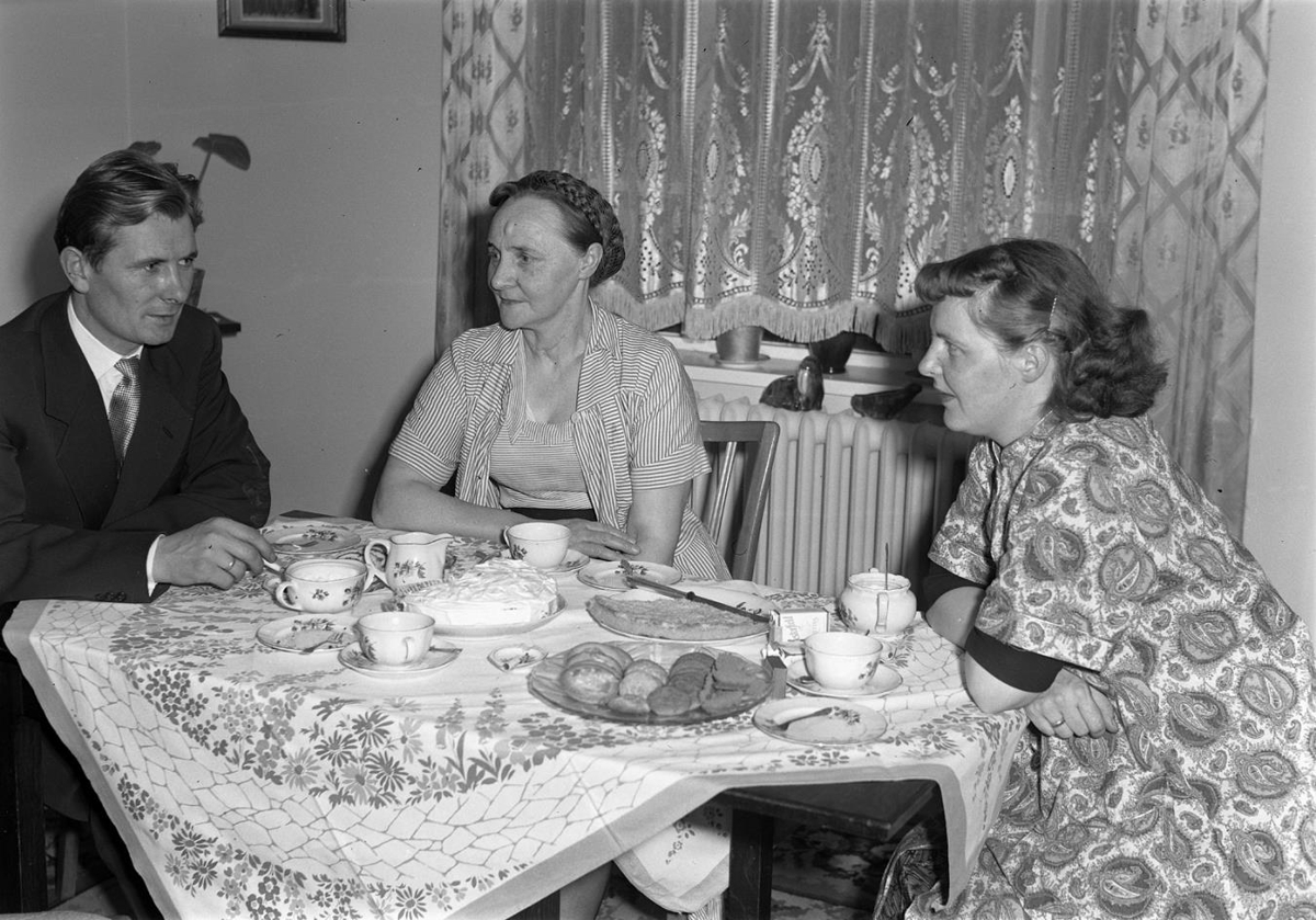 „Magnús Gíslason skipstjóri á Goðanes NK 105 og Gerpir NK 106. Konurnar eru Kristjana Þorsteindóttir og dóttir hennar Helga Jónsdóttir eiginkona Magnúsar.“ (GÞ 2024)