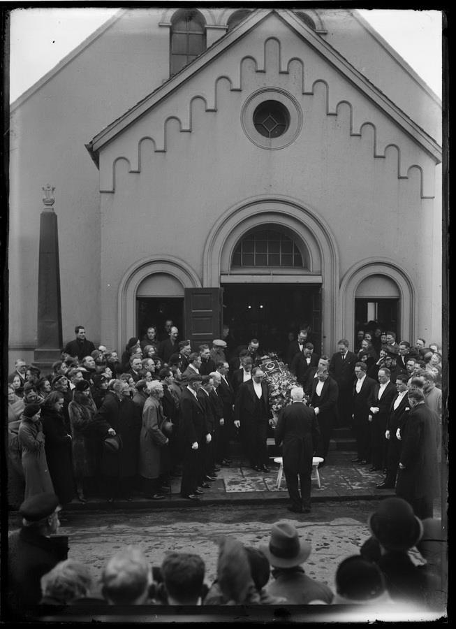 Jóns Þorlákssonar. Líkmenn: Pétur Halldórsson borgarstjóri t.h. fremst