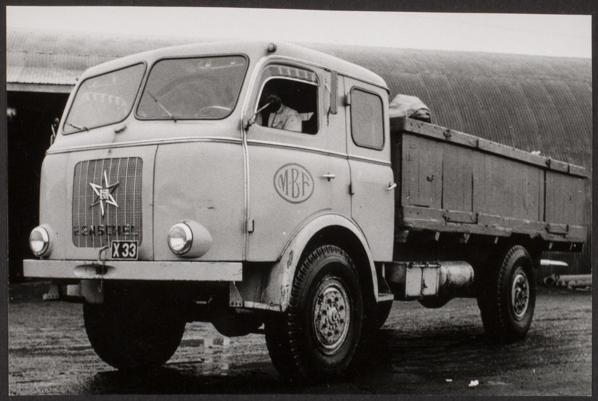 Kaupfélag Árnesinga, Sigtúnum, Selfossi. Henschel vörubíll Mjólkurbús Flóamanna (MBF) með bílnúmer X 33.