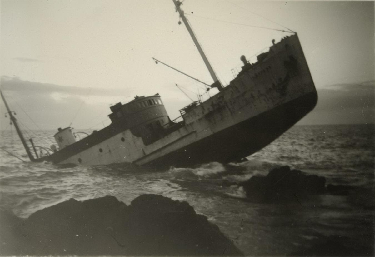 „Í þessari syrpu eru nokkrar myndir af seinna strandi m/s Laxfoss, í janúar 1952 við Kjalarnestanga.“ (BÞ 2018)