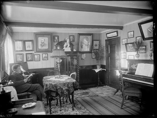Bjarni Björnsson leikari í stofu Sigurjóns Markússonar.