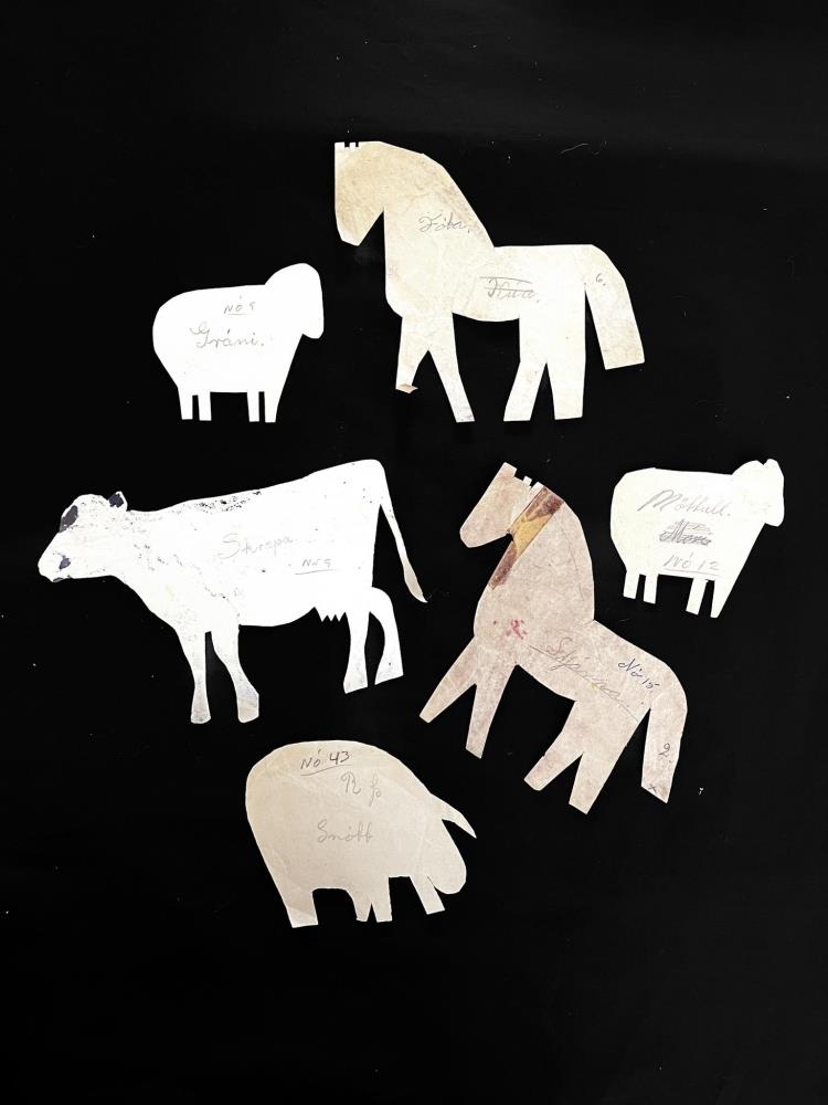 Mest eru þetta íslensk húsdýr, hestar, hundar, kindur, hænur oþh. Mörg dýranna eru merkt með nafni.