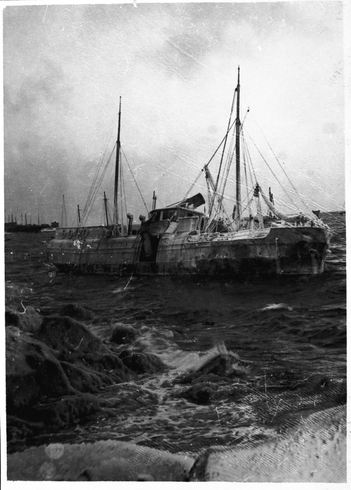 „Faxaflóabáturinn Reykjavík upp í fjörunni við Skansinn (Batteríið) í febrúar 1907. Kolaskipið Mod frá Haugasundi slitnaði upp og rakst á Reykjavíkina með þeim afleiðingum að gat kom á hana. Skipstjórinn sigldi Reykjavíkinni upp í fjöru við Batteríið svo skipið sykki ekki í höfninni.“ (ÞSG 2017)