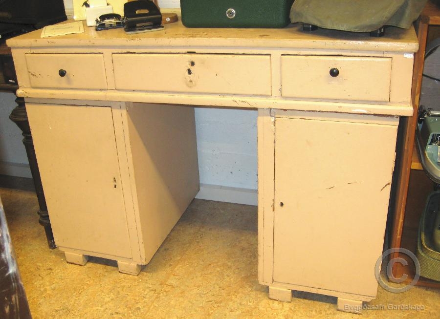 Skrifborð smíðað af Ingimundi Guðjónssyni (1886 - 1958) frá Garðstöðum í Garði. Í borðinu eru þrjár skúffur og tveir skápar sem hægt er að læsa. Ástand fremur lélegt.