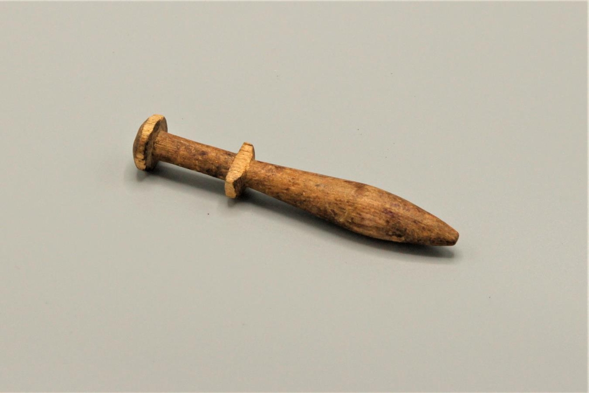 Kniplstokkur, renndur fremur en tálgaður. Fura. Lengd 10 cm. Kom frá Svanborgu Lýðsdóttur.