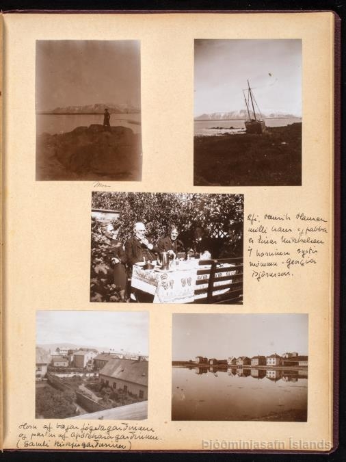 Albúm með 32 spjöldum og innlímdum 132 ljósmyndum, bæði inni- og útimyndum. Skrifaðar skýringar við myndirnar: