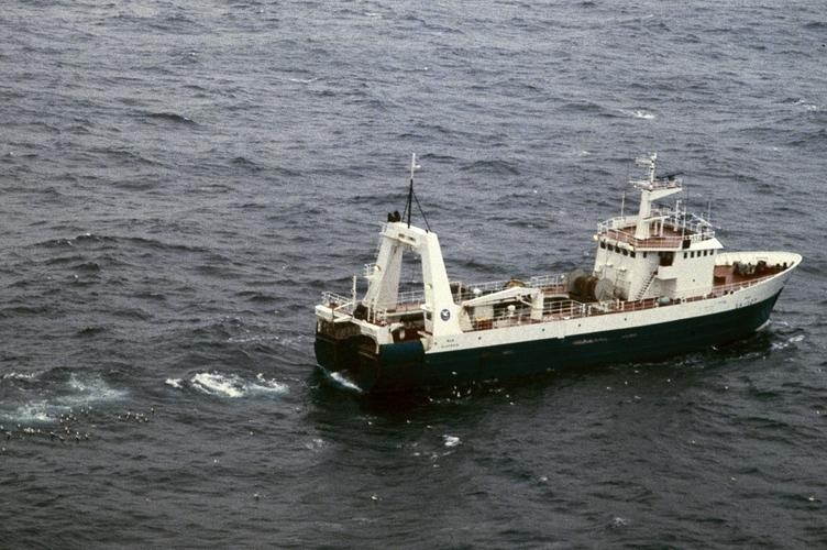 Skuttogari. 2 víðar loftmyndir af sitthvorum skuttogaranum úti á rúmsjó.