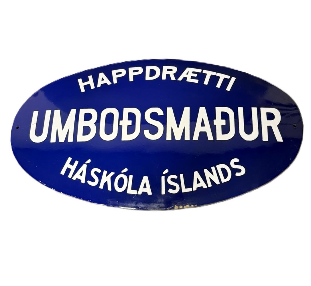 Emeleraður járnsköldur, sporöskjulaga, blár með hvítum stöfum, kúptur. Sambærilegur R-7419 að gerð. Merktur: "Happdrætti Háskóla Íslands". Páll Björgvinsson á Efra-Hvoli var umboðsmaður happdrættisins.