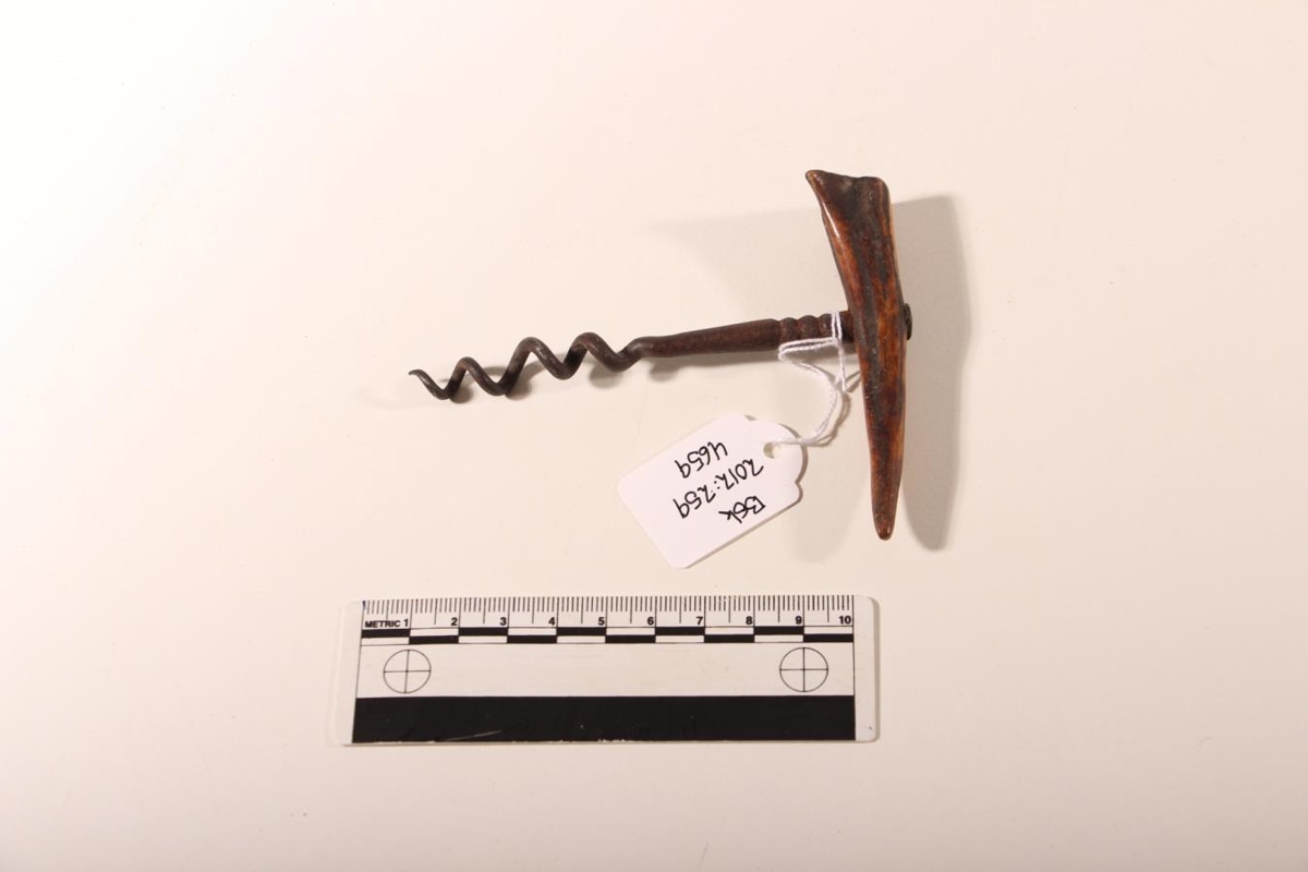 Tappatogari úr járni og hreindýrshorni. L. 11 cm, br. 8,6 cm.
