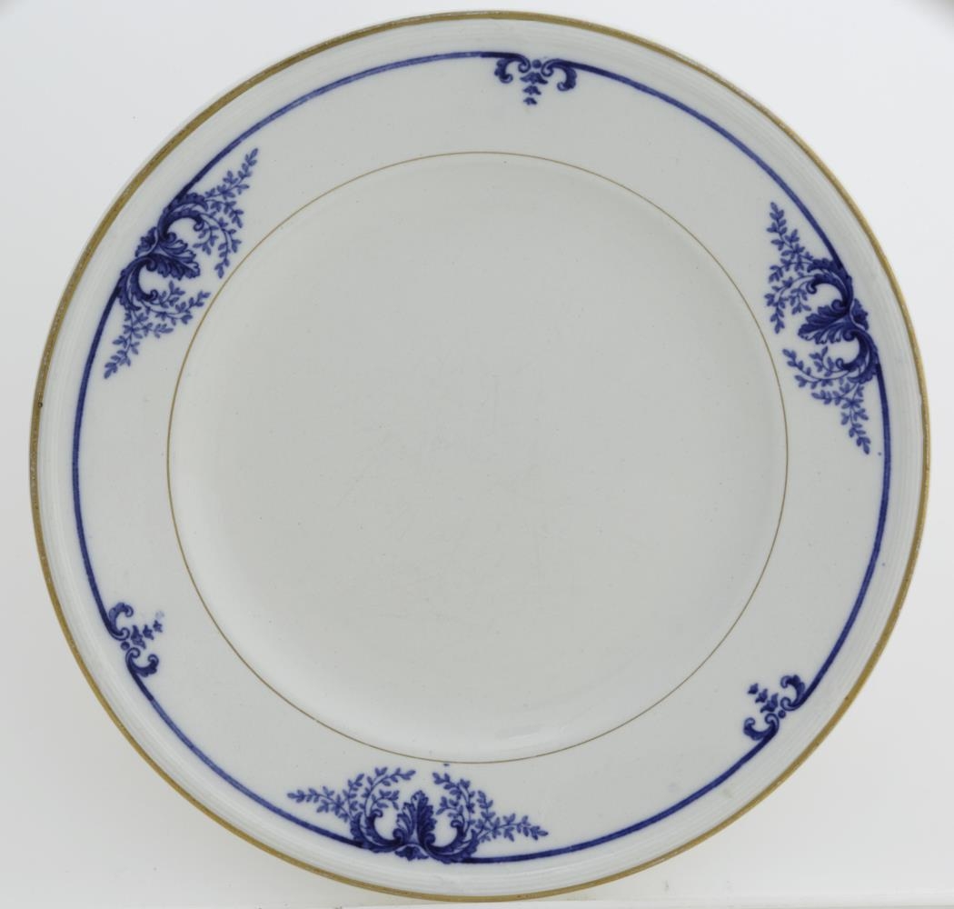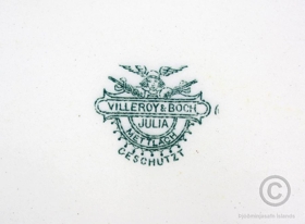 Matarstell frá Villeroy & Boch af gerðinni Julia (sbr. stimpil). Líkast til er það frá því um aldamótin 1900 eða mjög fljótlega uppúr þeim. Stimpill á botni er sá sem fyrirtækið notaði á árunum 1874-1909. Að sögn gefanda hefur stellið upphaflega verið fyrir 24. Það sem nú er eftir af stellinu er steikarfat, kartöflufat, hringlaga fat, 12 matardiskar og einn súpudiskur (sjá nánari lýsingar hér að neðan). Stellið er hvítt með blárri skrautrönd á barmi og gylltri rönd á brúnum. Stellið er úr eigu móðurforeldra gefanda, þeirra Sigurðar Eggertssonar Briem, sýslumanns og póstmeistara, og konu hans, Guðrúnar Ísleifsdóttur Briem. Þau bjuggu að Tjarnargötu 20 í Reykjavík. Þau gengu í hjónaband árið 1899 og því ólíklegt að stellið sé mikið eldra en það. Stellið var mikið notað á heimili þeirra í Tjarnargötu og sést það vel á gripunum. Á sumum gripunum er eins og mynstrið hafi runnið til, sé ekki alveg í fókus. Gefandi, Guðrún Jónsdóttir, erfði stellið eftir afa sinn og ömmu. Hún notaði það einungis við hátíðleg tækifæri.