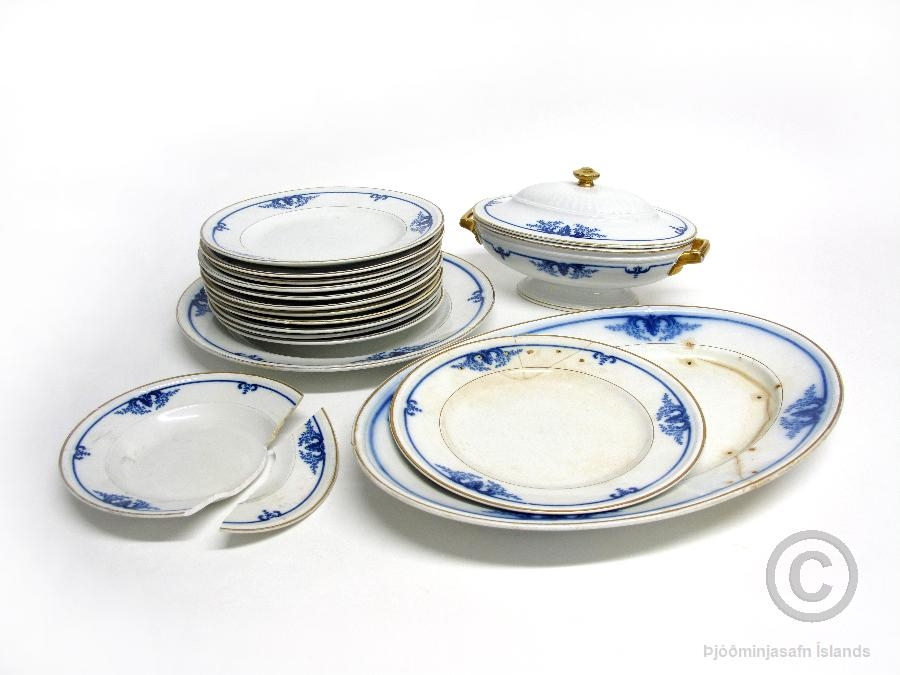 Þetta eru því 16 hlutir úr matarstellinu sem hafa varðveist (eru í 18 hlutum ef lok kartöflufatsins er talið og bæði brot súpudisksins).