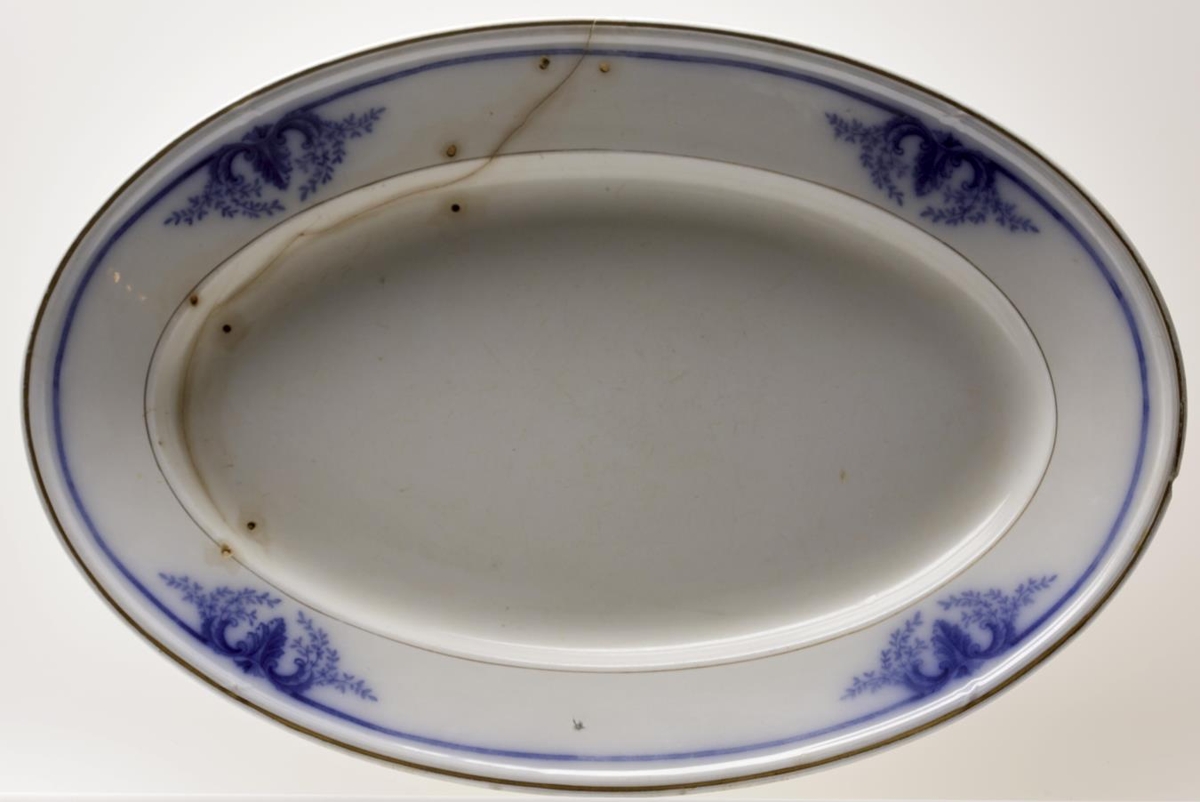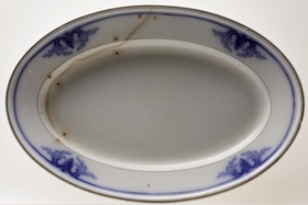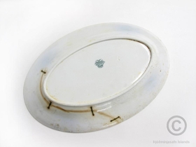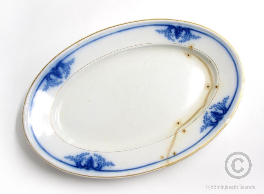 Steikarfat, sporöskjulaga. L. 45,4 cm; br. 30,7; h. 5 cm. Fatið hefur sýnilega verið mikið notað. Það hefur klofnað og hefur verið spengt saman með fjórum stórum spennum að neðanverðu. Viðgerðin var gerð í Kaupmannahöfn, enda var fjölskyldan með ágætis vinatengsl við Íslendinga sem búsettir voru í Danmörku á þeim tíma. Ekki er vitað hvenær viðgerðin var gerð.