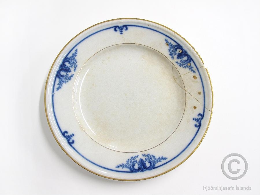 Súpudiskur, brotinn í tvo hluta. Þvermál 20,5; h. 3,2 cm. Hefur sýnilega verið mikið notaður.