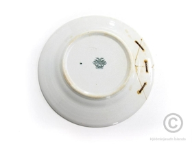12 matardiskar, hringlaga. Þvermál 25,5; h.2,9 cm. Diskarnir virðast mjög mis mikið snjáðir af notkun. Einn þeirra hefur brotnað og verið spengdur saman með þremur stórum spennum að neðanverðu. Viðgerðin var gerð í Kaupmannahöfn, enda var fjölskyldan með ágætis vinatengsl við Íslendinga sem búsettir voru í Danmörku á þeim tíma. Ekki er vitað hvenær viðgerðin var gerð. Að auki eru sprungur í tveimur öðrum diskum.
