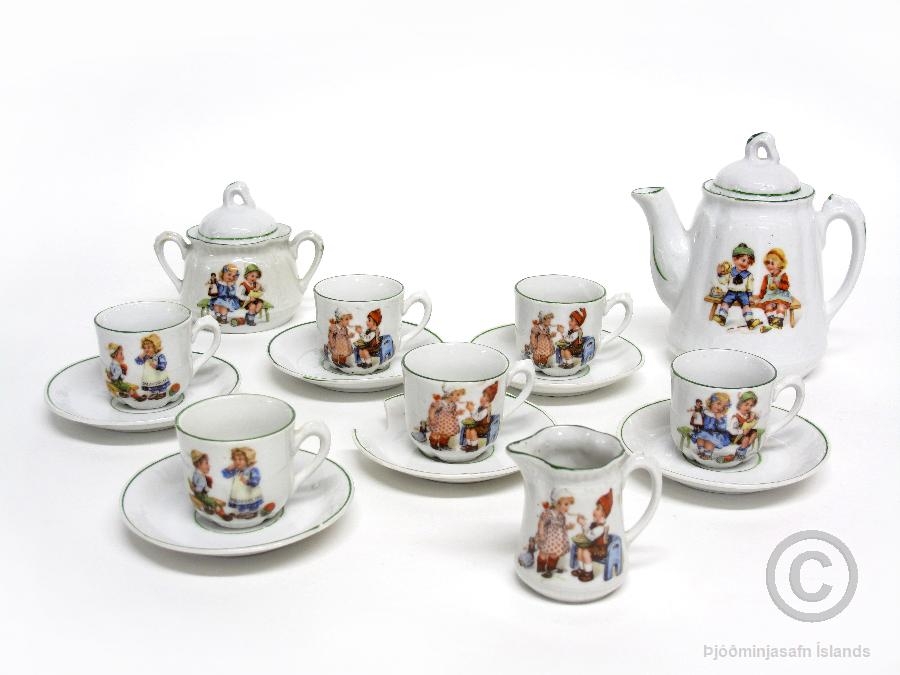 Bollastell, leikfang sem móðir gefenda (f. 1918) átti frá því hún var barn, ásamt systrum sínum. Stellið er erlent og líklegt þykir að faðir þeirra systra hafi keypt það í útlöndum. Hann stundaði sjómennsku og sigldi enskum togurum. Í stellinu eru kaffikanna með loki (hæð með loki 14,5 cm), sykurkar með loki (hæð með loki 9,3 cm), rjómakanna (h. 6,3 cm), 6 bollar (hæð 4,7 cm) og 6 undirskálar (þvermál 10,5 cm). Brotið er úr einni undirskálinni. Stellið er hvítt á lit með grænni rönd meðfram brúnum. Á könnunum, karinu og bollunum eru litskrúðugar myndir af börnum að leik (fjórar mismunandi myndir).