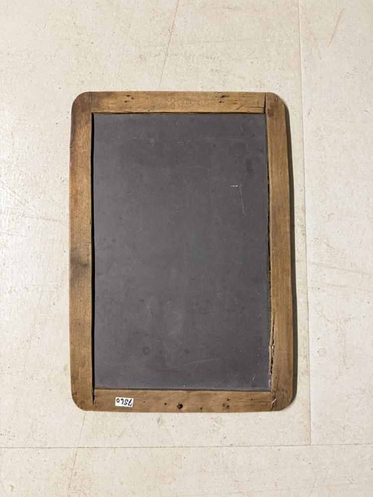 Reikningsspjald Ásgeirs Auðunssonar, notað af honum í barnaskóla. Framleiðslumerki: BEE SLATE og býfluga. Stærð 33 x 22,5 cm. Er í tréramma. Spjaldið var áður í eigu Óskars bróður Ásgeirs (f. 1916) og er merkt honum, Ó.