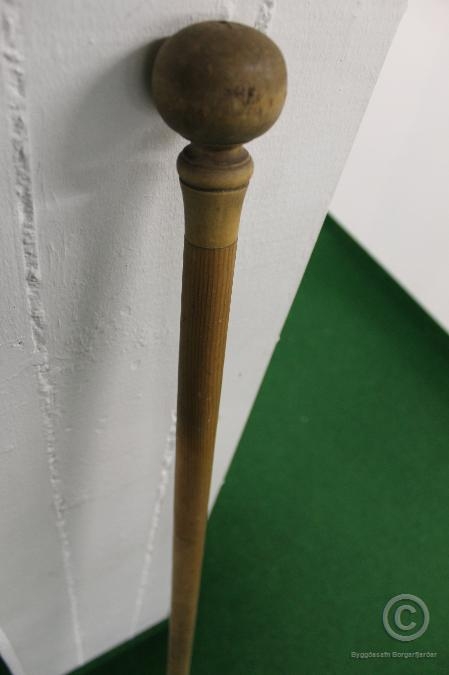 Broddstafur - 134 cm langur, renndur hnúður á skafti. Ljós viður. Merktur: „Búi“