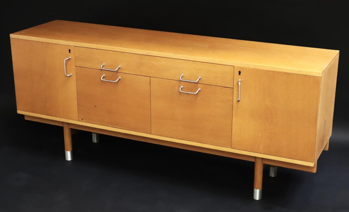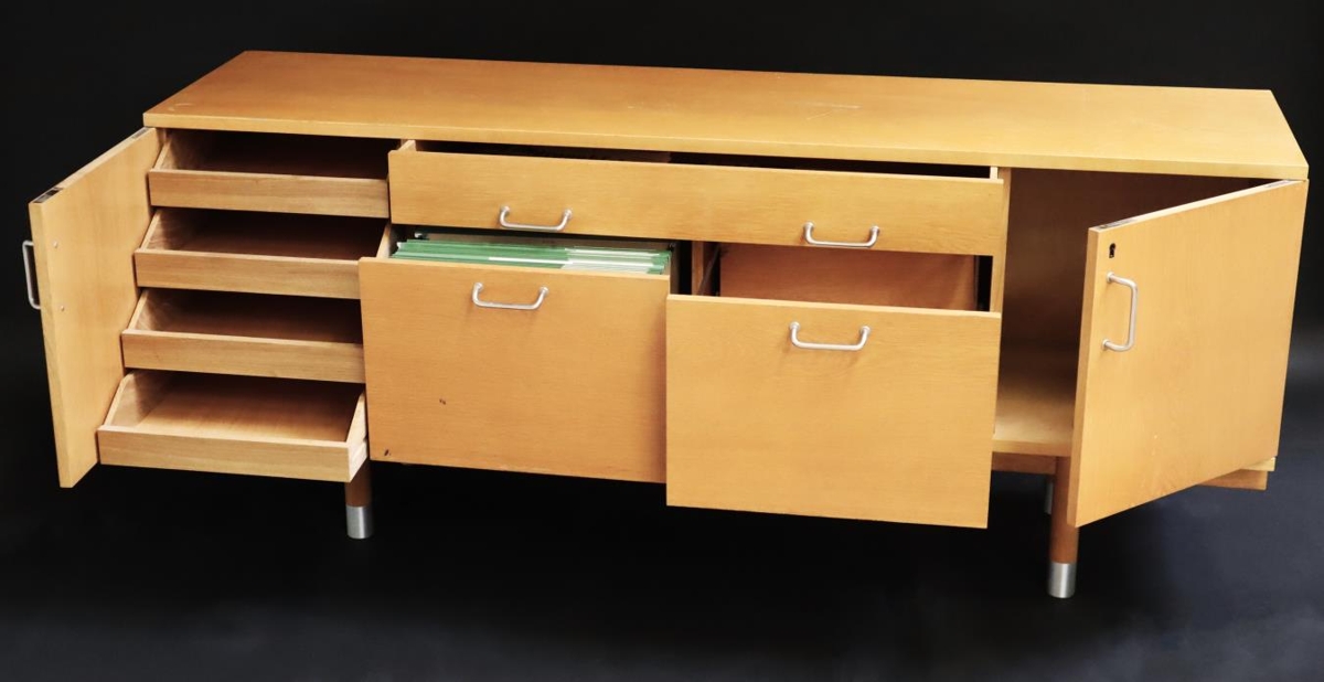Skrifstofuskápur / skenkur úr tré með einföldum járnhöldum að framan. Fyrir miðju eru þrjár skúffur og til hliðanna hvoru megin eru skápar. Í öðrum þeirra eru fjórar útdraganlegar skúffur. Merkt skilrúm fyrir skjöl eru í neðri skúffu vinstra megin. Fætur skápsins eru klæddar málmi neðst við gólf. Skápurinn kemur af skrifstofu borgarstjóra í Austurstræti 16. Í einni skúffunni leyndist fundargerð frá 4. júlí 1985, sem segir m.a. frá því þegar Kvennalistinn mætti á fund borgarstjórnar klæddar sem fegurðardrottningar.