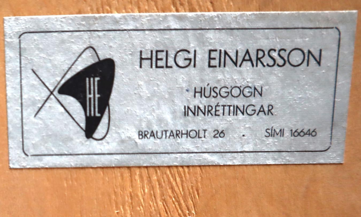 Skápinn smíðaði Helgi Einarsson, húsgagnasmiður, en verkstæði hans var að Brautarholti 26.