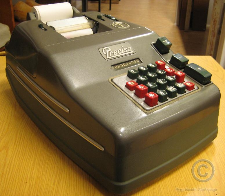 Precisa A.G. rafmagnsreiknivél. 110/220 volt. 100 watt Zuirich Schweiz. Þessi munur var í notkun í Hraðfrystihúsi Gerðabátanna, fyrirtæki sem starfrækt var í Garðinum á árunum 1943 – 1972. Gefandi munar: Ingibjörg Rósa Þórðardóttir (1954 – 2014).