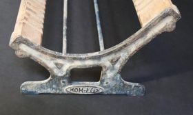 Standur úr tré og járni. Grafin áletrun beggja vegna á hliðum: "HOH-LUX" og "Hoh & Hahne. Leipzig". Á milli hliðanna, sem eru úr járni, liggja tveir þversum bitar úr tré með mörgum raufum. Einnig eru á milli hliðanna tveir járnteinar.
