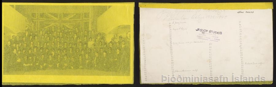 Sr. Jakob Jónsson, Gísli Jónsson skáld frá Háreksstöðum, Jóhannes Bjarnason verkfræðingur, Ragnar H. Ragnar söngstjóri, Richard Beck prófessor o. fl., sjá bakhlið myndar.