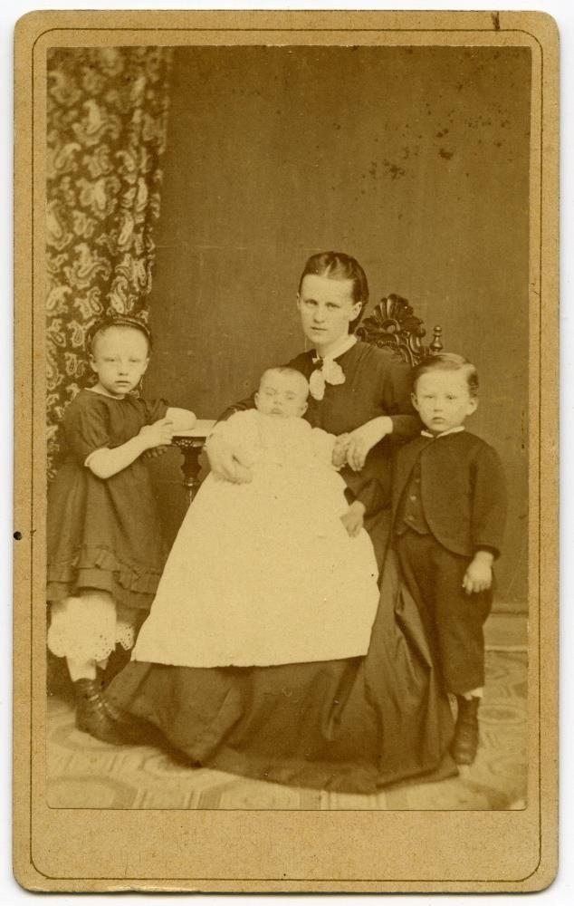 Til baka í leitVeistu meira?Vista í mitt safnPrentaAfrita slóðPanta myndNotkunarskilmálarBarnVarðveitt hjáÞjóðminjasafn ÍslandsMeð þrjú börn sín.Aðrar upplýsingarLjósmyndari: Sigfús Eymundsson Jörgine Margrethe Sigríður Guðmundsóttir Sveinbjörnsson, Á myndEfniSvart/hvít pósitíf, Annars konar pósitífSafnnúmerSafnnúmer A: Mms-29612Stærð9 x 6 cmAðfangategundLjósmyndirUndirskrárUndirskrá: Mannamyndasafn (Mms)FlokkunMannamyndirEfnisorð / HeitiMyndefni: Barn Myndefni: MóðirHeimildirAðfangabók Þjóðminjasafns Íslands. Nr. 28522 - 31552.