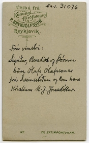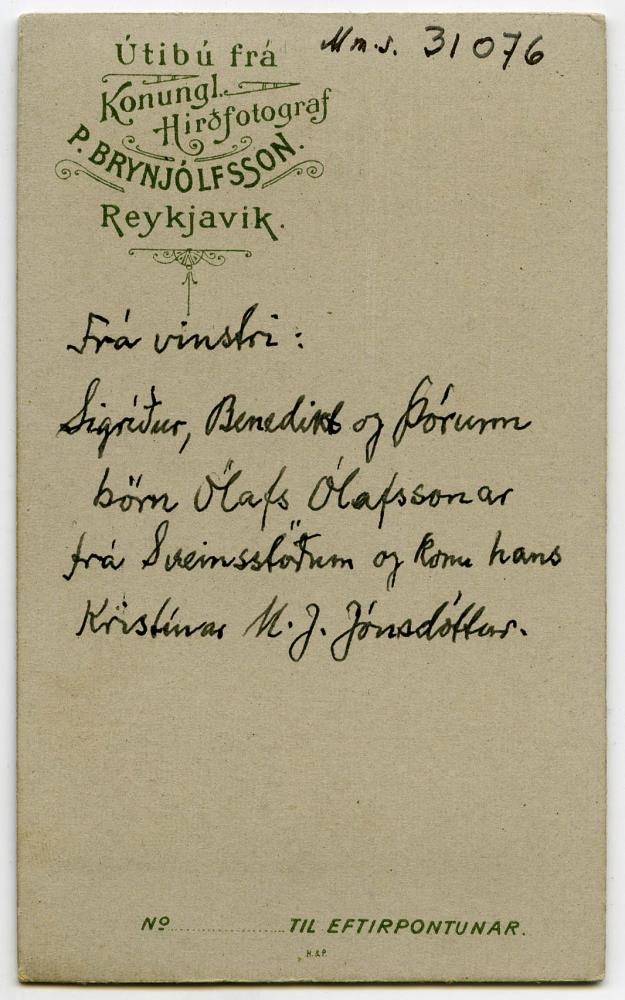 og konu hans Kristína M. J. Jónsdóttur: Sigríður , Benedikt og Þórunn.