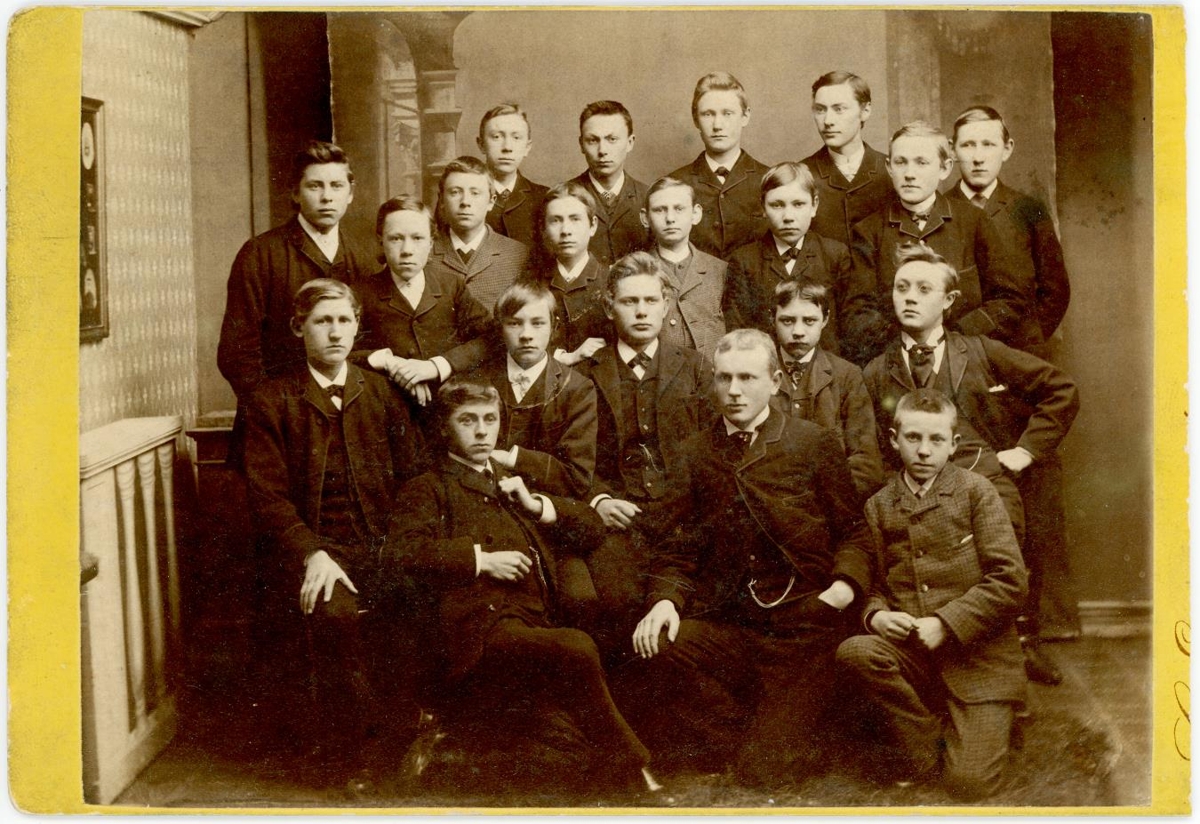 Hópmynd cab. í ramma: Virðist vera sami bekkur og í Mms. 31203. 21 maður, Myndin virðist tekin í skólastofu (*