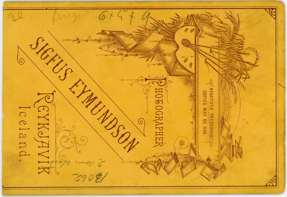 „þetta er er útskrifar árg. 1897 frá lærðaskólanum það sem er merkilegt við þessa mynd er að þarna er að sjá fyrstu konuna sem útskrifaðist úr þessum skóla og hún var færeysk. Einnig er útgefandi kortsins þarna líka sá sem situr vinstra megin við hana (hægra megin séð) Einar Gunnarsson stofnandi Dagblaðsins Vísir, Unga Ísland, Póstkort osf.“ (EB 2016)