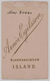 Til baka í leitVeistu meira?Vista í mitt safnPrentaAfrita slóðPanta myndNotkunarskilmálarKarlmaður1895Varðveitt hjáÞjóðminjasafn Íslands Eiríkur Jónsson um 1895. Aðrar upplýsingarLjósmyndari: Arnór Egilsson Eiríkur Jónsson, Á myndÁrtal1895EfniSvart/hvít pósitíf, Annars konar pósitífSafnnúmerSafnnúmer A: Mms-30990Stærð9 x 6 cmAðfangategundLjósmyndirUndirskrárUndirskrá: Mannamyndasafn (Mms)FlokkunMannamyndirEfnisorð / HeitiMyndefni: KarlmaðurHeimildir Aðfangabók Þjóðminjasafns Íslands. Nr. 28522 - 31552.