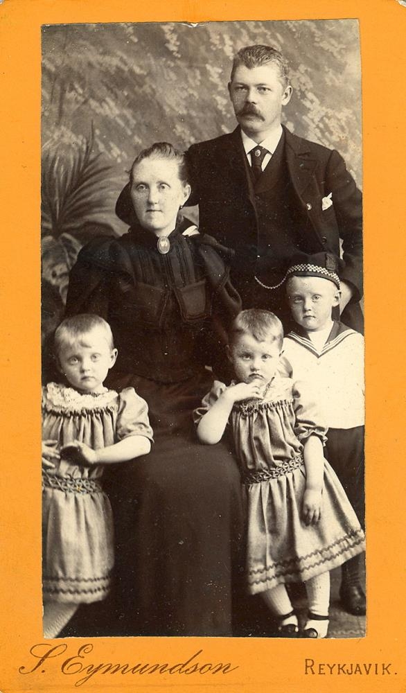 kaupm., kona hans Kristjana, f. Zoega og 3 börn þeirra, líklega Geir, Guðrún