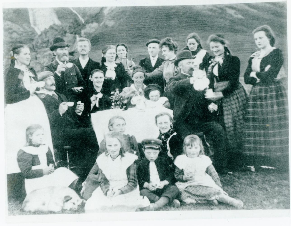 Sýslumaður og fjölsk., mynd tekin úti. Hópmynd, fjölskylda Guðlaugs Guðmundssonar