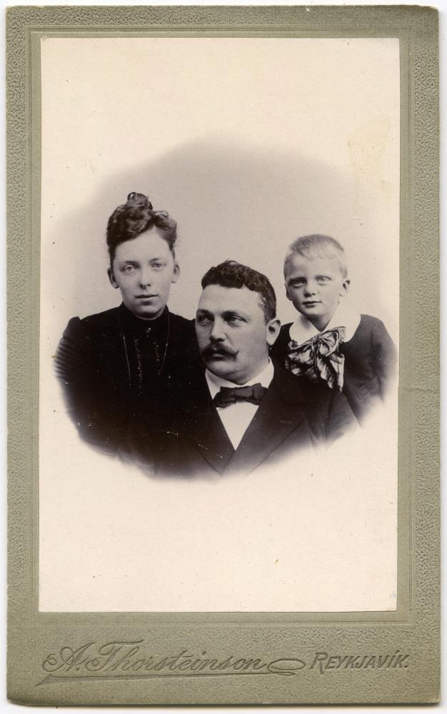 Axel Tulinius sýslumaður, kona hans Guðrún og sonur þeirra Hallgrímur.