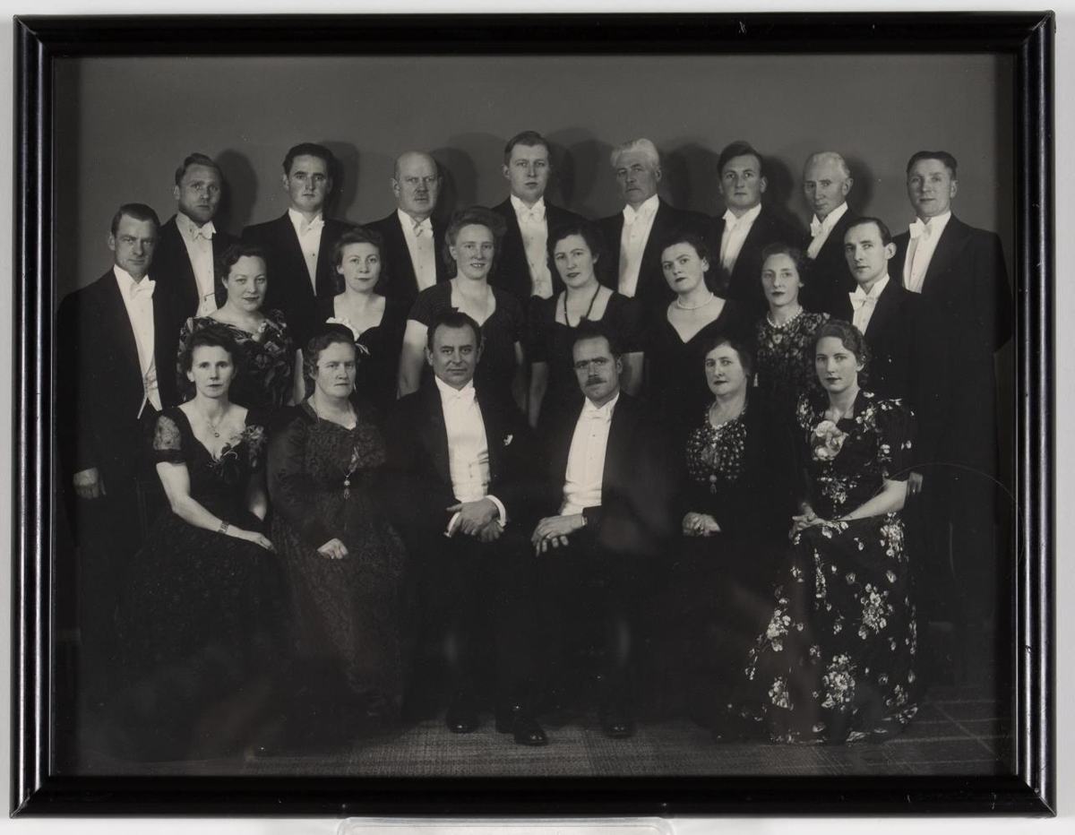 Kór undir stjórn Páls Ísólfssonar og Victors v. Urbancie. Ljósm. 18 x 24 cm. í 1 cm. br. ramma. Nöfn sem þekkt eru skráð á bakhlið.