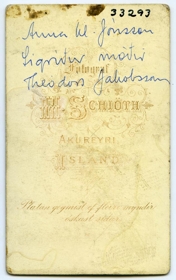 Til baka í leitVeistu meira?Vista í mitt safnPrentaAfrita slóðPanta myndNotkunarskilmálarKonaVarðveitt hjáÞjóðminjasafn Íslands Og "Sigríður, móðir Théódórs Jakobssonar". Aðrar upplýsingarLjósmyndari: Anna Cathrine Larsen Schiöth Anna María Jónsson Schiöth, Á myndEfniSvart/hvít pósitíf, Annars konar pósitífSafnnúmerSafnnúmer A: Mms-33293Stærð9 x 6 cmAðfangategundLjósmyndirUndirskrárUndirskrá: Mannamyndasafn (Mms)FlokkunMannamyndirEfnisorð / HeitiMyndefni: KonaNafn/Nöfn á myndSigríðurHeimildir Aðfangabók Þjóðminjasafnsins Mms. 31553 -34345.