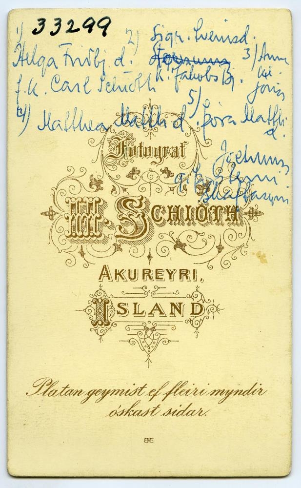 Hópmynd, stúlkur. Hópmynd, stúlkur, Helga Friðbjarnardóttir, Sigríður Sveinsdóttir, Anna Jónsson, f. Schiöth, Matthea Matthíasdóttir, Þóra Matthíasdóttir.