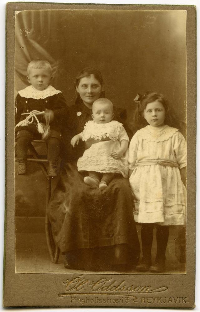 Ingiríður L. Olsen, Þormóðsstöðum, Skildingaholti og 3 börn hennar.