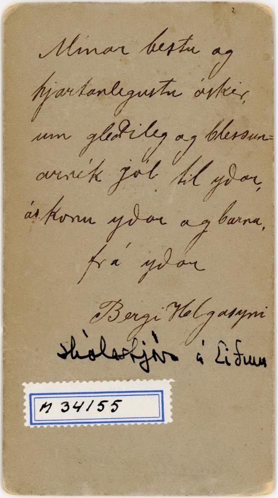 Aftan á mynd skrifar Bergur: „Mínar bestu og hjartanlegustu óskir, um gleðileg og blessunarrík jól til yðar, á konu yðar og barna, frá yðar Bergi Helgasyni.“