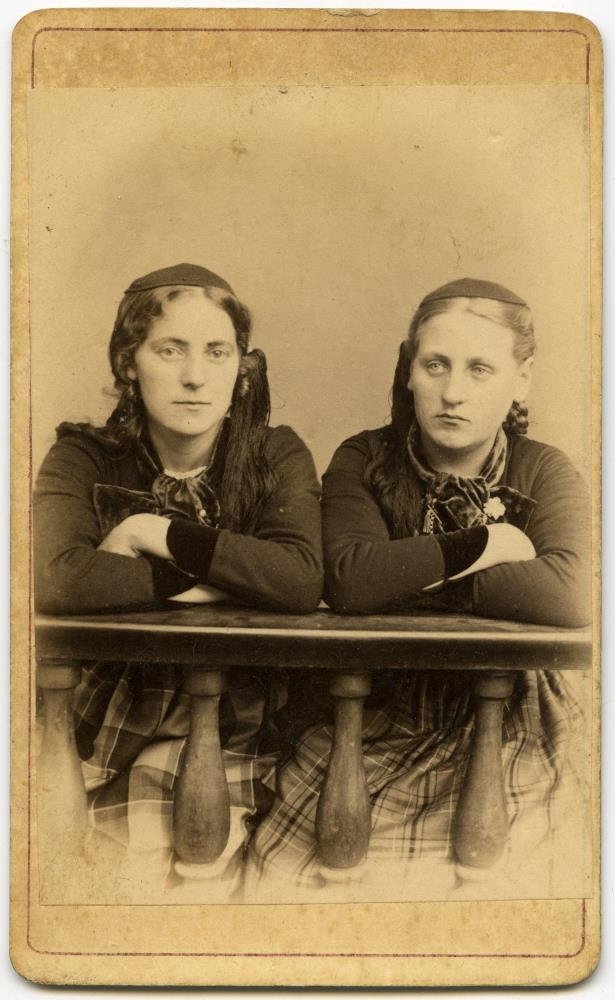 T.h. er Ragnheiður Skúladóttir Thorarensen frá Móeiðarhvoli, síðar húsfreyja í Reykjavík. T.v. er mágkona hennar, Jensína Björg Matthíasdóttir.