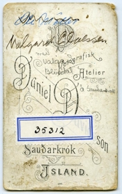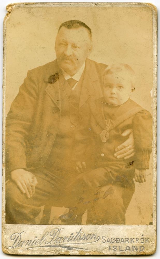 Valgard Claessen með Valgard Blöndal (barn) Valgard Claessen, síðast ríkisféhirðir, með Valgard Blöndal (barn) póstafgreiðslumann, Sauðárkróki.