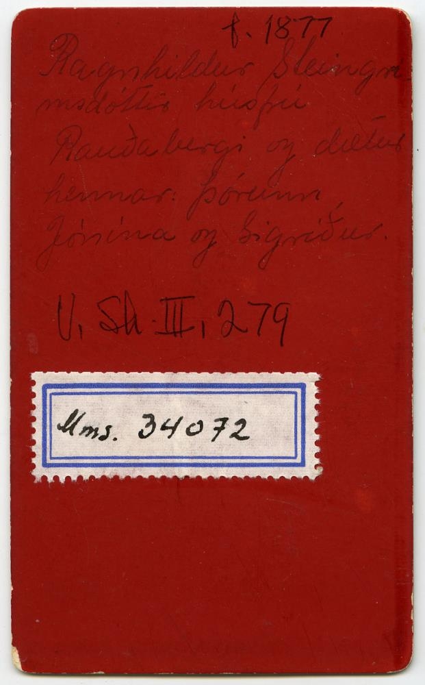 Og dætur hennar Þórunn, Jónína og Sigríður. Ragnhildur Steingrímsdóttir húsfreyja, Rauðabergi og dætur hennar Þórunn, Jónína og Sigríður.