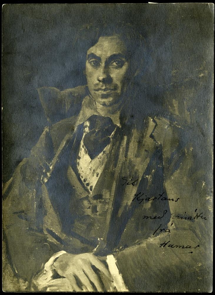 Haraldur Hamar Thorsteinsson rithöfundur Ljósm. 19,4 x 14,3 cm, af málverki.