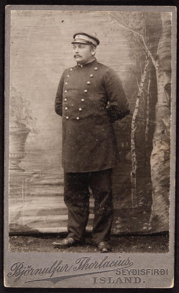 Axel V. Tulinius í einkennisbúning Axel V. Tulinius sýslumaður í einkennisbúningi lögreglu Kaupmannahafnar, að því er segir á bakhliðaráletrun.