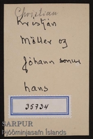 „Þetta getur ekki verið Johan Georg Möller, því hann var fæddur 1848 því verið 19 ára árið 1866, þetta er líklegast Ole Peter Chirstian Möller bróðir hans. Á manntali Rvíkur frá 1866 er Johan ekki skráður, en Ole er þá til húsa hjá foreldrum sínum 12 ára í Hafnarstræti 5, Rvík, sem passa alveg við aldurinn á drengnum á myndinni.“ (HG 2023)