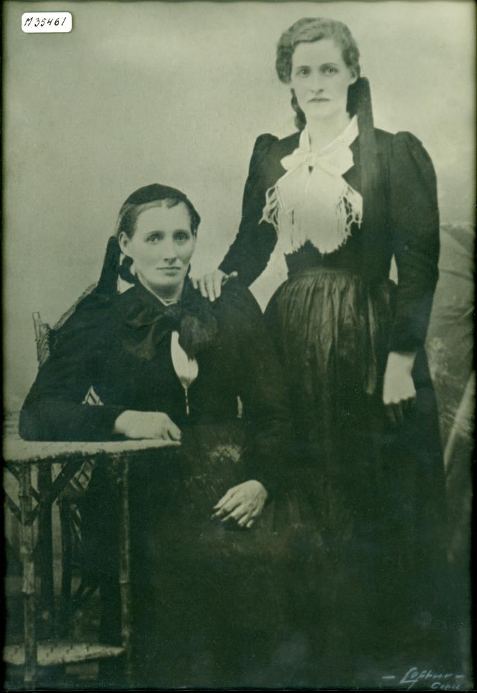 Margrét Elíasdóttir og Halldóra Halldórsdóttir Ljósm. 28 x 20 cm í 1,3 cm br. ramma: Mæðgur, Margrét Elíasdóttir, kona Halldórs Sölvasonar, Fremri-Hnífsdal, og dóttir þeirra Halldóra, kona Ingimars Bjarnasonar, einnig Fremri-Hnífsdal. Eftirtaka.