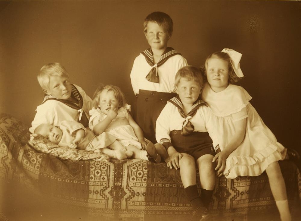 Hópmynd. Sex börn Tryggva Þórhallssonar og Önnu Klemensdóttur Ljósm. 11,2 x 15,4 á spjaldi 16 x 24 cm: